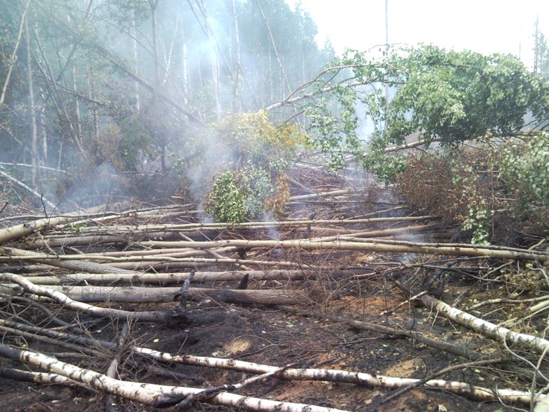 Лесной пожар торфяников - это жесть, особенно когда их тушат лесничества. Нам: мне, Blackу Жене и туристу Сергею выдали 2 ранцевые брызгалки, отвели в лес, и сказали поливайте. Но лесу было абсолютно пофиг до наших брызгалок. Горел как хотел и где хотел. Проковырялись там до 7вечера,и поехал домой. Сергей и Женя надышались угара. Теперь у них болит голова и проблемы с желудком. Но в принципе компания была хорошая, погода отличная, гнуса почти не было и это сгладило впечатление от пустой траты времени, но к чести сказать на вверином нам участке леса пожар не разгорелся, было ликвидировано около 7 очагов возгорания, и напилена машина дров. Вот народу действительно не хватает катастрофически. Было бы больше людей начали разгребать завалы. |
