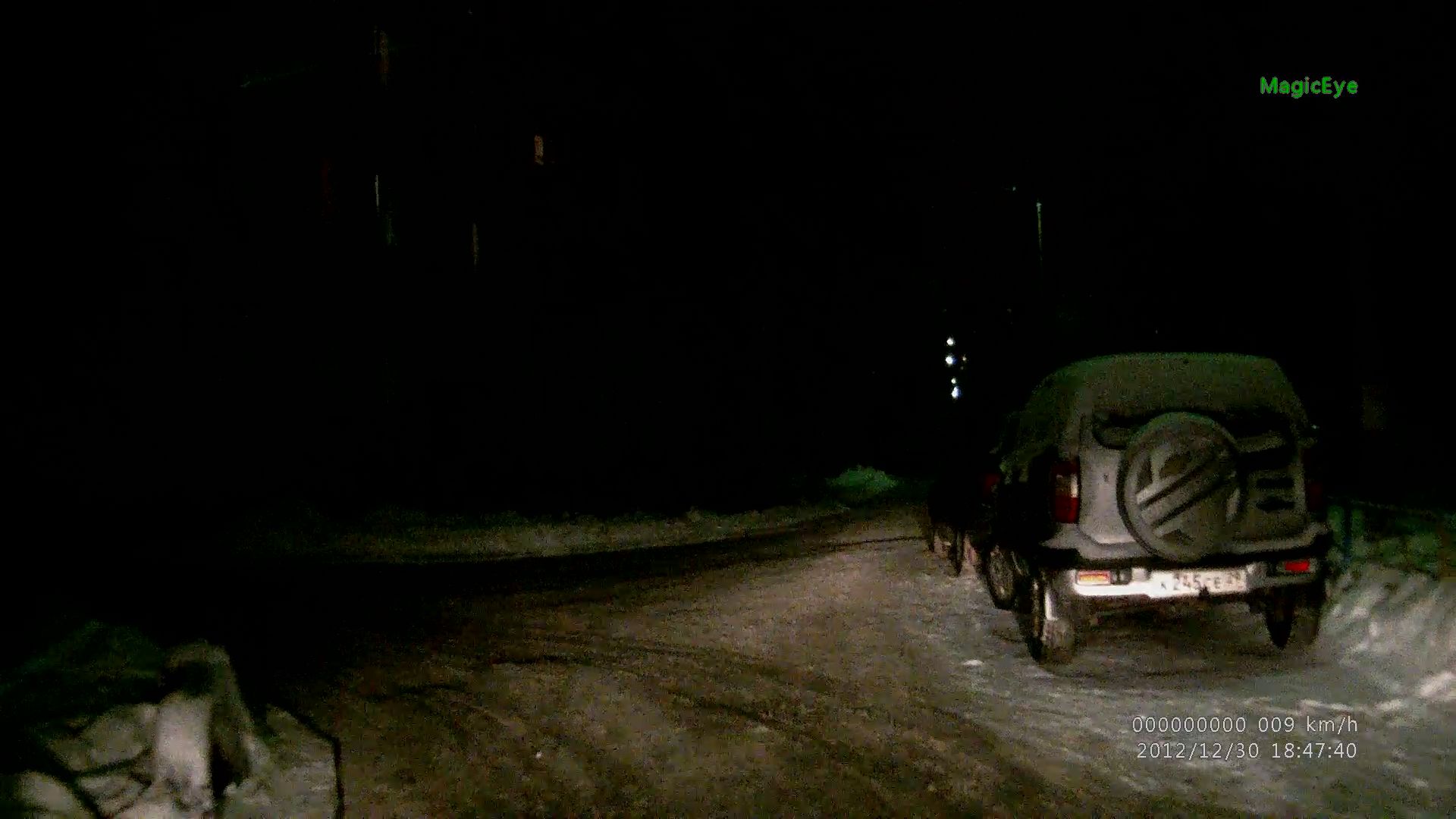 Выкладываю несколько фотографий: ночная и дневная съемка видеорегистратором MagicEye HD70G. Одна из фото - окно плеера (записан в самом регистраторе), где проигрывается один из файлов.