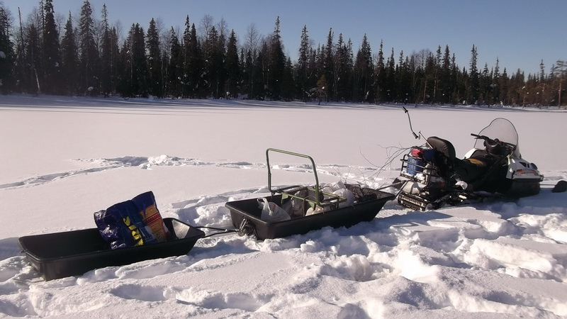Собираем все вещи и выдвигаемся на озеро, собираем жерлицы и движемся в сторону дома