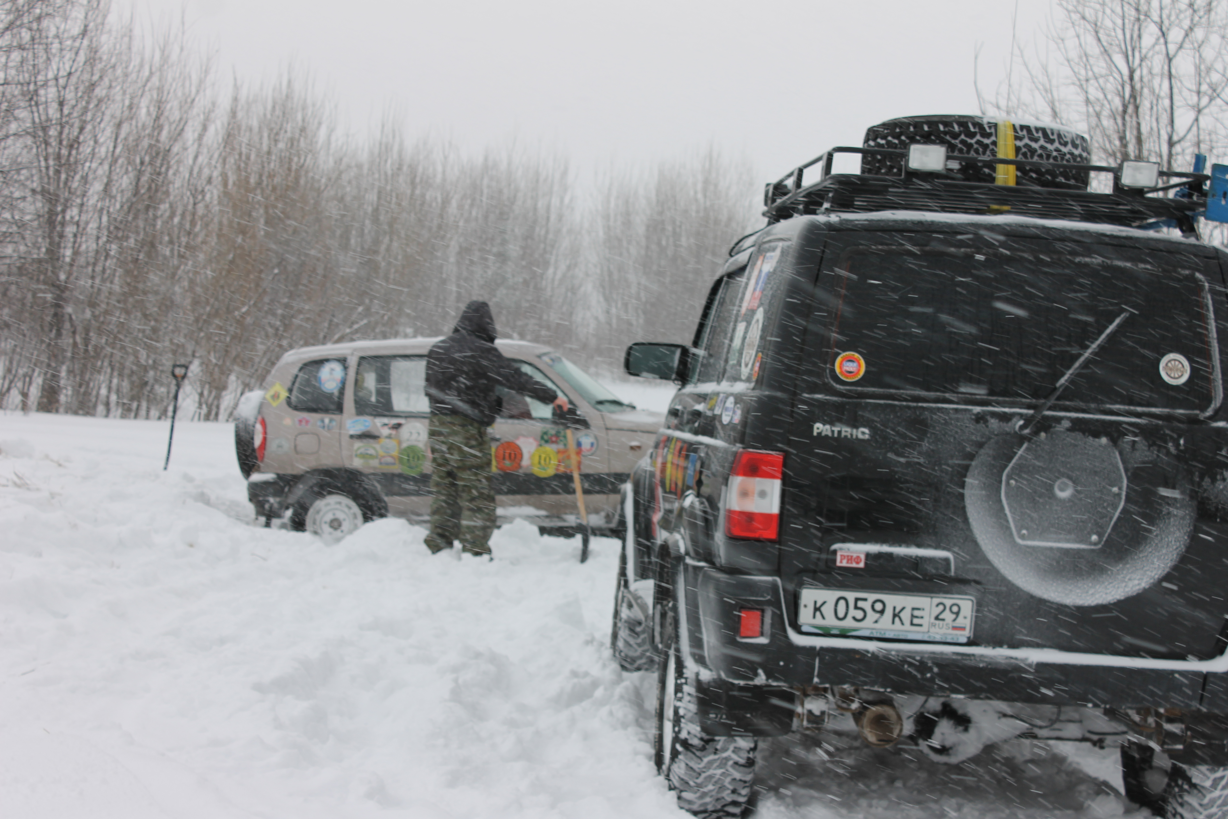 Покатались с Lisss79'ом по заснеженному лесочку , ну и естественно далеко мы не уехали , пришлось вызывать "тяжелую артиллерию ",но как обычно это бывает она до нас не доехала и "спасательная операция" провалилась(все спас авто закопались,даже непревзойдённый Mikel ).Благо мы выкопались своими силами и вернулись в лагерь , где нас уже ждал горячий чай из знатного самовара Petrovich1005'а за что ему огромнейшее спасибо!В общем все как всегда прошло наипрекрасненько