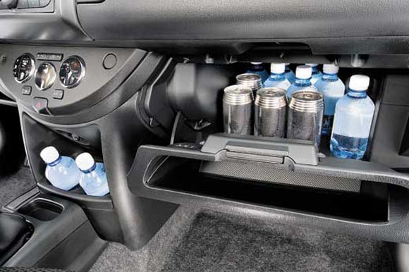 охлаждаемый бардачок (здоровый!), ящик под пассажирским сиденьем, ящик в багажнике, ниша под докатку, под документы бардачок, ниша под карты.
